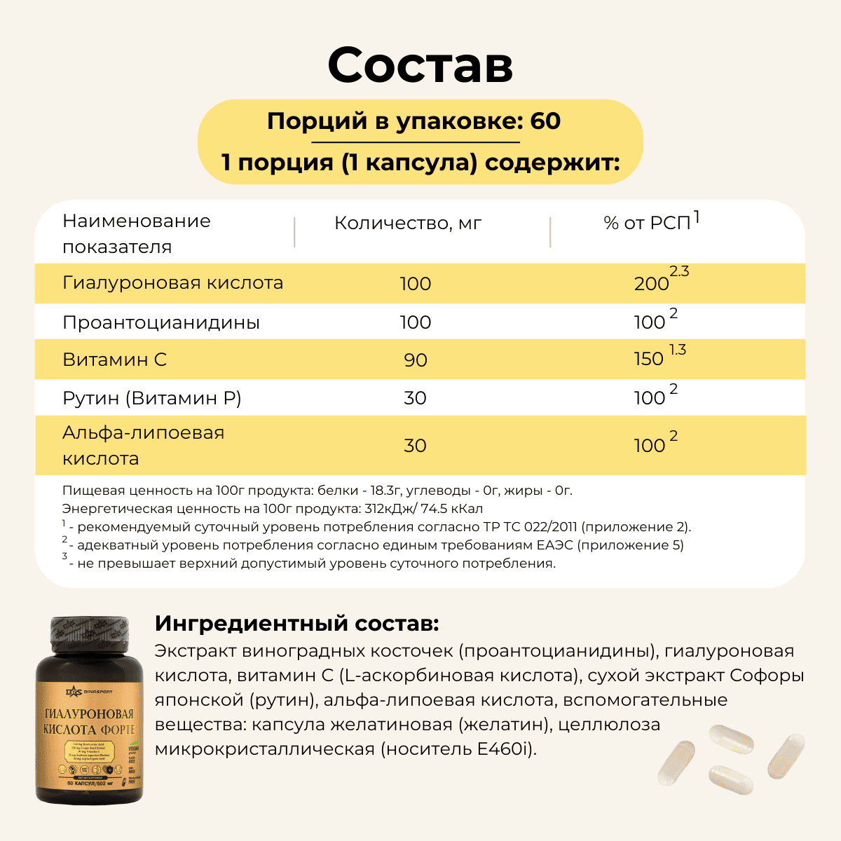| Гиалуроновая кислота | 100 | 200 2,3 |